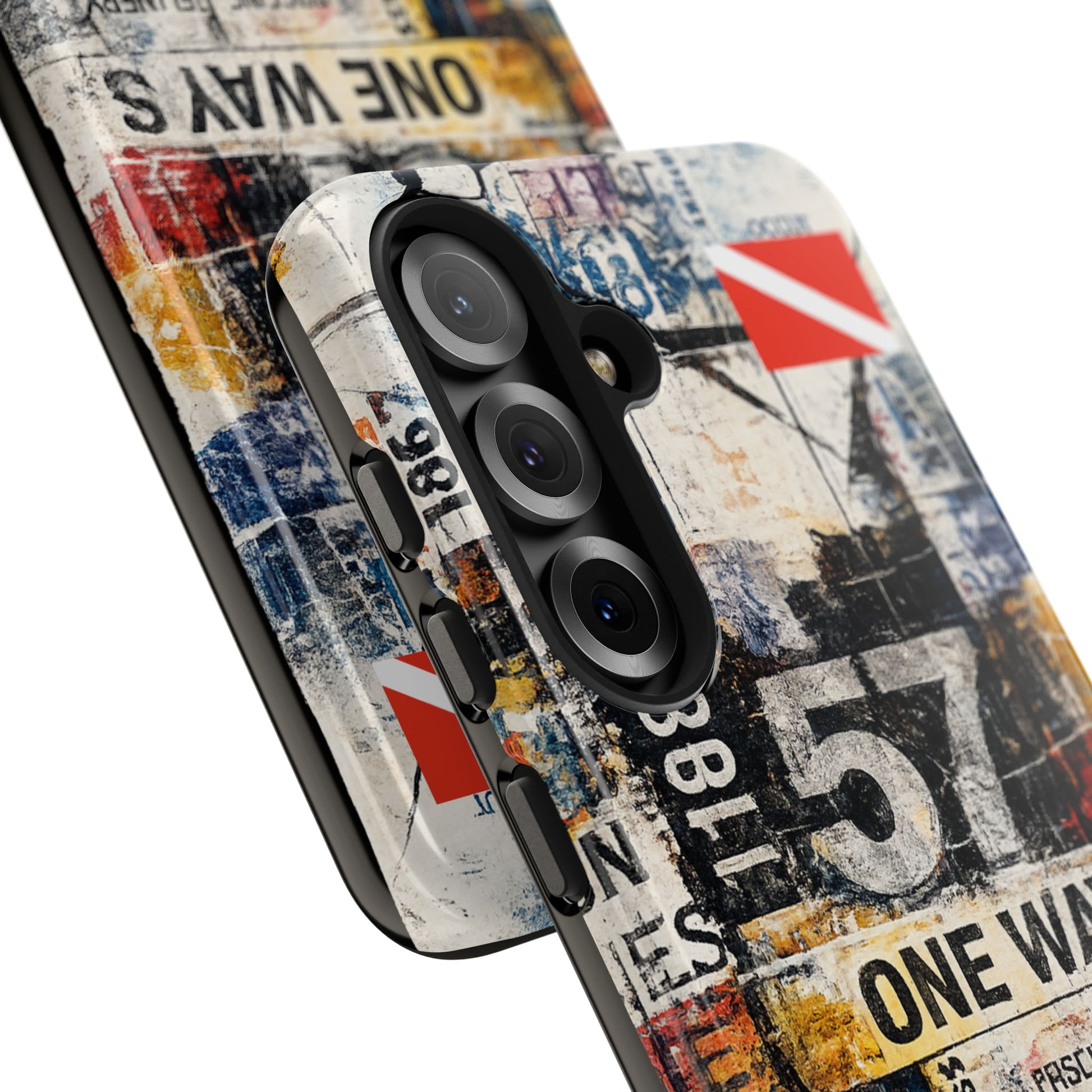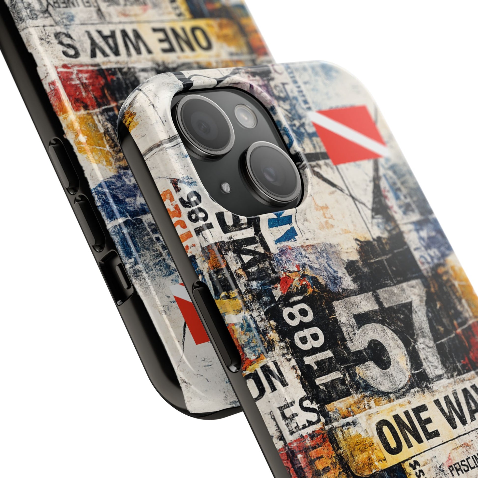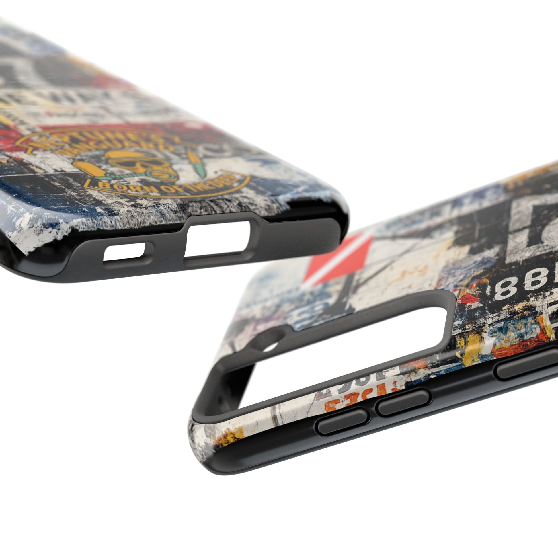 A rugged, art-forward phone case that blends streetwise collage graphics with military-inspired insignia for a bold everyday look. Built to protect without losing personality, this case carries layered poster, stencil, and signage artwork that feels worn-in and intentional, not manufactured.